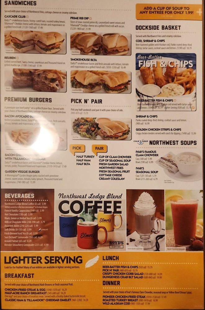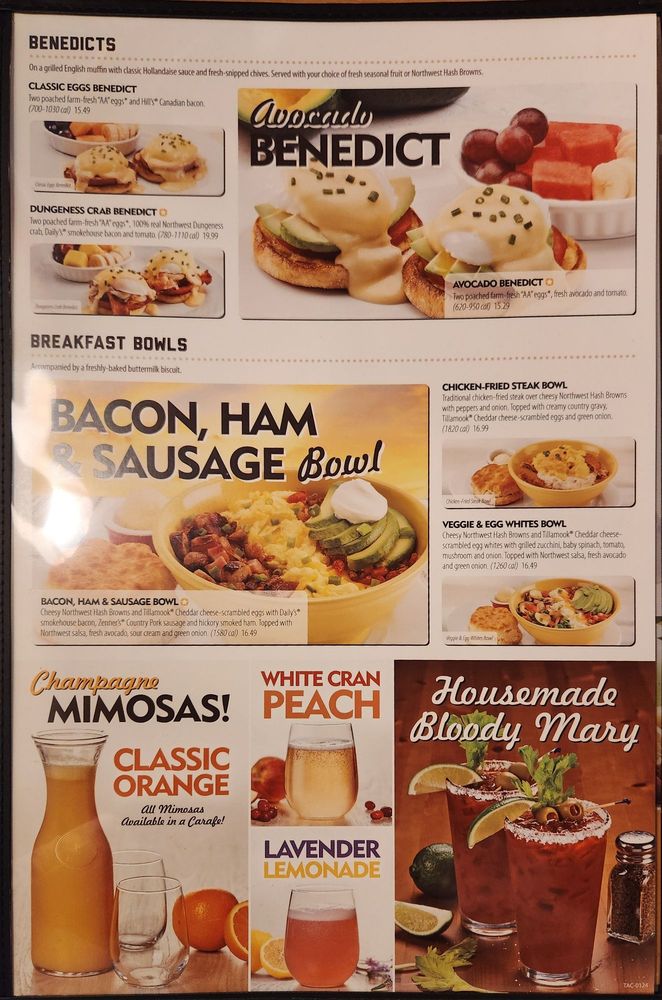 Welcome to Elmer's Restaurant in Tacoma, WA, a cherished local diner that serves up classic American breakfast and brunch dishes. Their menu highlights include the indulgent Crabacado Omelet, packed with real Northwest Dungeness crab and drizzled with classic Hollandaise, and the hearty Looking For Sun Omelet featuring smoky chipotle bacon and fresh avocado. For lunch and dinner, try the Cascade Club Sandwich or the Smokehouse BLTA, both beautifully crafted on grilled French rolls. The ambiance is casual and inviting, perfect for families and friends alike, with accommodating outdoor seating available.